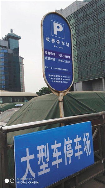 在北京站東街的一家大型車(chē)停車(chē)場(chǎng)里,旅游大巴車(chē)進(jìn)出的頻率非常高。按照停車(chē)收費(fèi)牌上的顯示,這家停車(chē)場(chǎng)的收費(fèi)標(biāo)準(zhǔn)是停車(chē)一個(gè)計(jì)時(shí)單位15分鐘為5元,并就“不足一個(gè)計(jì)時(shí)單位不收費(fèi)”進(jìn)行了明顯標(biāo)注。