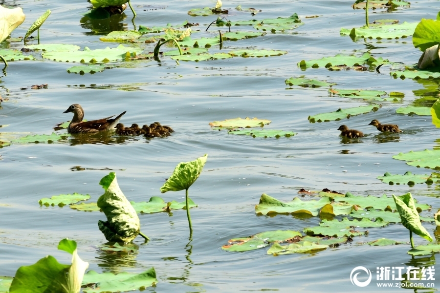 5月15日,西湖斷橋荷塘出現(xiàn)了今年第4窩小鴛鴦,此次共10只。與西湖第1窩時(shí)的獨(dú)苗相比,此窩可算是一個(gè)大家庭, 這讓鴛鴦媽媽忙不過(guò)來(lái)了。(浙江在線拍友 里爾 攝)
