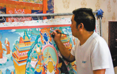 “心靜下來才可以作畫,進(jìn)入狀態(tài)后我可以連續(xù)畫4個(gè)小時(shí)。一幅唐卡可以保存流傳千年,作畫的人和歷史能夠融為一體?!痹谏<獤|知眼里,“每次創(chuàng)作都是文化的傳承,都是心靈的凈化?!保ㄓ浾?袁泉)