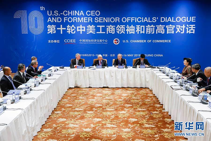 5月15日,第十輪中美工商領(lǐng)袖和前高官對(duì)話開幕式在北京舉行。新華社記者 沈伯韓 攝