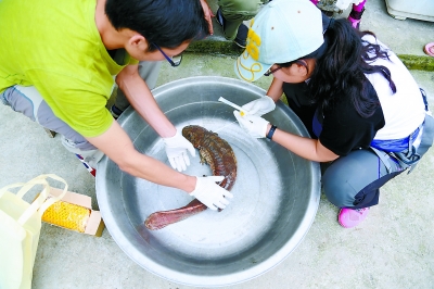 在云南昭通養(yǎng)殖場(chǎng),中國(guó)大鯢無(wú)損傷取樣中。陳宏滿(mǎn) 攝