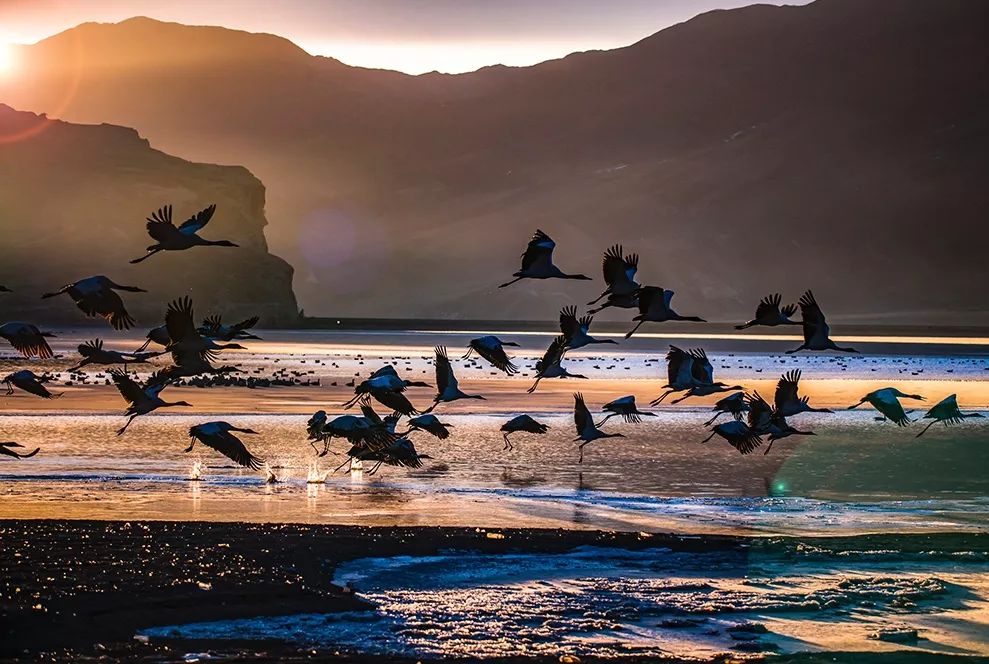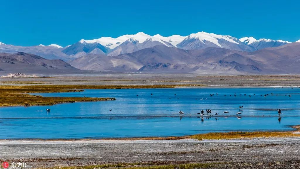 西藏日喀則仲巴縣,成群的大雁在這高原湖泊中棲息。