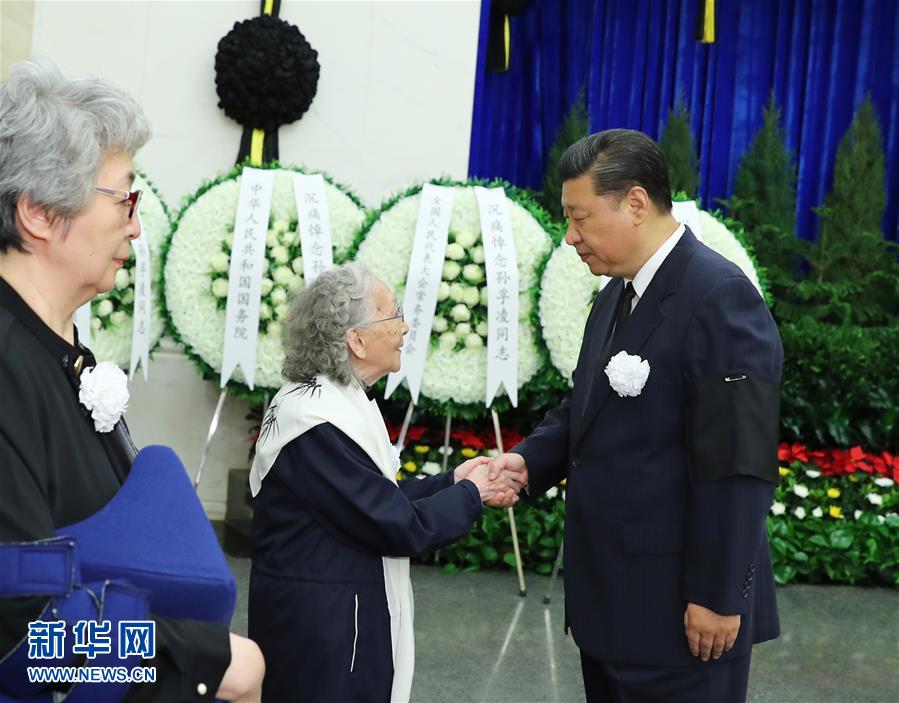 上午9時許,習(xí)近平、李克強、栗戰(zhàn)書、汪洋、王滬寧、趙樂際、韓正等,在哀樂聲中緩步來到孫孚凌同志的遺體前肅立默哀,向?qū)O孚凌同志的遺體三鞠躬,并與孫孚凌同志親屬一一握手,表示慰問。