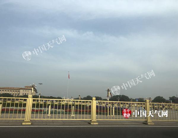 今晨,北京天空晴朗少云。