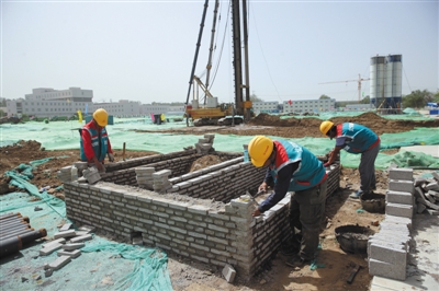 昨日,廣渠路快速公交系統(tǒng)工程正式開工建設(shè),工人在現(xiàn)場(chǎng)施工作業(yè)。新京報(bào)記者 王貴彬 攝