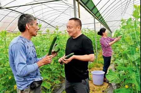 福建省武夷山市上梅鄉(xiāng)首陽村黨支部書記、村主任左承基(中)在農民創(chuàng)業(yè)園的大棚內了解蔬菜種植情況 張國俊攝/本刊