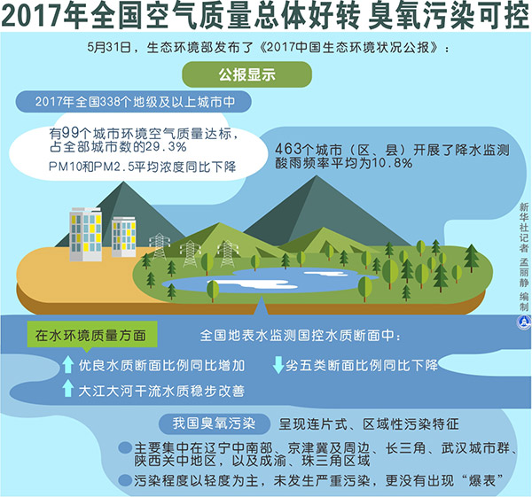 圖表:2017年全國空氣質(zhì)量總體好轉(zhuǎn) 臭氧污染可控 新華社記者 孟麗靜 編制