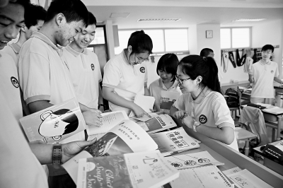 高考臨近,北京市二中高三年級(jí)同學(xué)在完成高三學(xué)年最后一堂課后,將清理出來(lái)的多余的復(fù)習(xí)叢書(shū)送給了高二年級(jí)的學(xué)弟學(xué)妹們。周良 攝