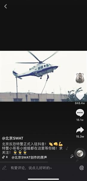 “相比文字,用視頻展現(xiàn)特警隊(duì)的隊(duì)伍形象和精神面貌更有視覺沖擊力?!被谶@樣的考慮,北京市公安局反恐特警總隊(duì)開設(shè)了首個(gè)新媒體宣傳賬號(hào)。