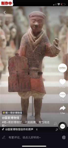 國(guó)博發(fā)布的短視頻中,“高冷”的陶男俑、陶女俑和說書俑在音樂中“跳起舞來”。手機(jī)APP截圖