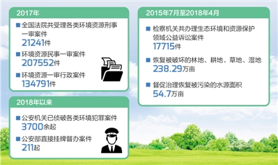 6月5日,最高法、最高檢、公安部公布了近年來打擊污染環(huán)境違法犯罪相關(guān)情況。2017年,全國法院共受理各類環(huán)境資源刑事一審案件21241件,審結(jié)20602件;2015年7月至2018年4月,全國檢察機關(guān)共辦理生態(tài)環(huán)境和資源保護領(lǐng)域公益訴訟案件17715件;今年以來,全國公安機關(guān)已偵破各類環(huán)境犯罪案件3700余起,抓獲犯罪嫌疑人5730余名,公安部直接掛牌督辦案件211起。