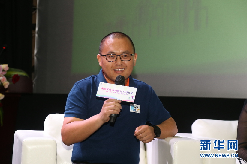 ↑新華網體育總經理侯大偉在發(fā)布會現場。新華網宋溪雨 攝
