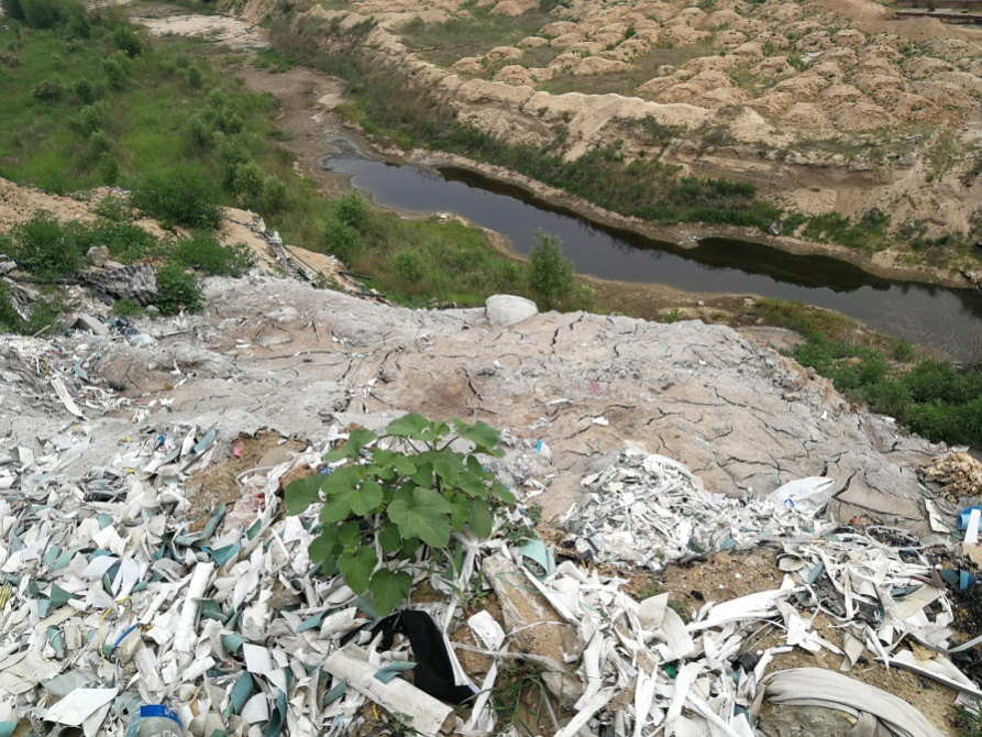 現(xiàn)場檢查發(fā)現(xiàn),在大沙河定州段遠(yuǎn)遠(yuǎn)望去,河堤上堆滿了生活垃圾、工業(yè)廢渣、邊角料、醫(yī)療廢物等多種固體廢物,各種垃圾“應(yīng)有盡有”,形成了一個長約3公里的“垃圾帶”。與長度同樣驚人的,是“垃圾帶”的寬度,垃圾一直從河堤延伸至河床上,斜坡高度達(dá)到10米左右。
