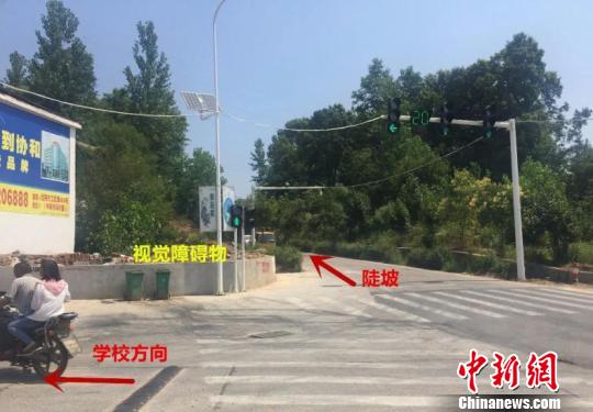 14日中午,記者趕至事發(fā)現(xiàn)場(chǎng)時(shí)發(fā)現(xiàn),事故發(fā)生的路口距離學(xué)校大門不足100米,挨著學(xué)校紅綠燈的左側(cè)路口是一陡坡,而且存在一定的視覺盲區(qū),極易發(fā)生交通事故。