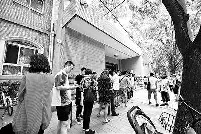 資料圖:排隊(duì)的家長(zhǎng)。圖片來源:北京青年報(bào) 攝影/本報(bào)記者 袁藝