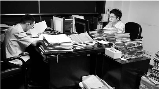 晚上8點(diǎn)多的法院燈火通明,辦公室里案卷如山,案卷能夠多到什么程度?比如一件非法吸收公眾存款的案件,受害人數(shù)百上千,單單受害人筆錄有時候就是好幾推車。纖弱的書記員姑娘往往需要推著小推車輸送案卷,而法官們有時候則不得不踮著腳尖在辦公室里查閱翻看。