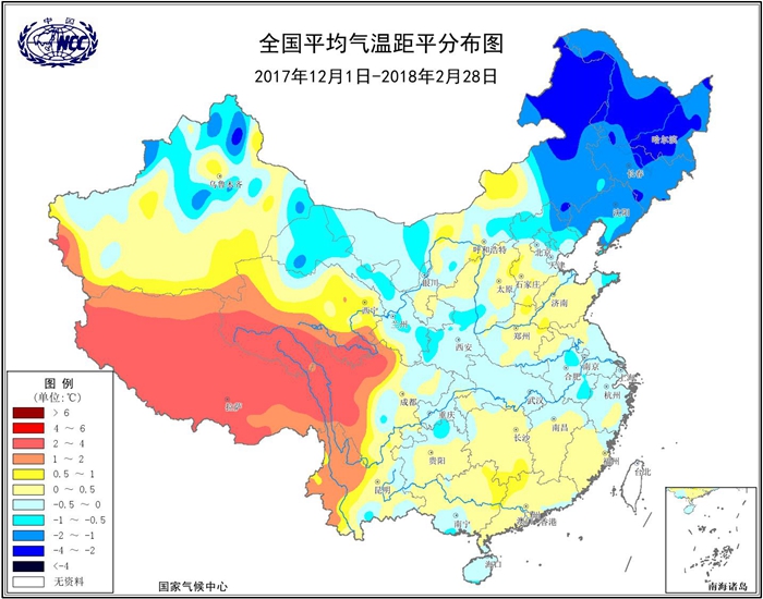 周兵:從氣候異常信號(hào)來(lái)看,我國(guó)于2017年10月-2018年3月出現(xiàn)一次弱的拉尼娜事件,一般拉尼娜對(duì)我國(guó)的直接影響就是冷冬,然而剛剛過(guò)去的冬季,全國(guó)平均氣溫-3.2℃,較常年同期(-3.4℃)還偏高0.2℃。雖然整體氣溫較常年平均偏高,但從氣溫距平分布來(lái)看,除青藏高原大部氣溫較常年同期偏高2~4℃外,全國(guó)其余地區(qū)氣溫接近常年或偏低,其中東北及內(nèi)蒙古東北部、新疆北部等地偏低1~2℃,局地偏低2~4℃。