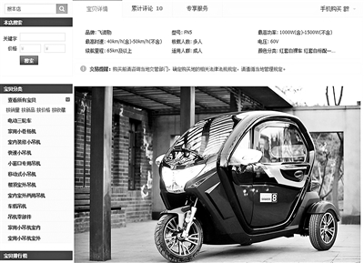 如淘寶上一家電動(dòng)車銷售商家就直言標(biāo)注:“此車不能辦理牌照,也不需要駕照,請(qǐng)根據(jù)當(dāng)?shù)貙?shí)際政策購(gòu)車,不能因上牌問(wèn)題退貨。”