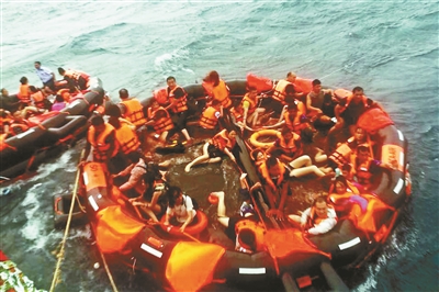在“鳳凰號(hào)”下沉之前,陳林就跳下了水,他把救生筏解開,還救起了兩個(gè)孩子。