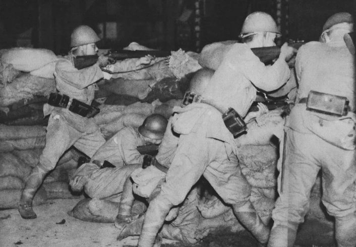 面對(duì)日軍的進(jìn)攻,中國守軍奮起反擊。
