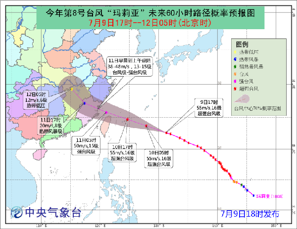 張玲:“瑪莉亞”影響最為嚴重的時段為10至11日。10日開始,臺灣以東洋面、東海南部以及臺灣海峽北部的風(fēng)力會逐漸加大到10-12級,臺風(fēng)中心經(jīng)過的附近海域和地區(qū)的風(fēng)力可達13-15級。此外,10日夜間至11日,包括臺灣、福建、浙江東南部以及江西等地將會出現(xiàn)大到暴雨,部分地區(qū)會出現(xiàn)大暴雨到特大暴雨。由于降水強度強,需要防范降水帶來的城市內(nèi)澇、滑坡、泥石流等次生災(zāi)害影響。由于臺風(fēng)強度比較強,沿海風(fēng)力大,目前正值暑期時段,在沿海地區(qū)旅游的公眾和相關(guān)部門也要做好應(yīng)急預(yù)案;相關(guān)水域水上作業(yè)和過往的船舶應(yīng)當(dāng)回港避風(fēng),加固港口設(shè)施,防止船舶走錨、擱淺和碰撞。