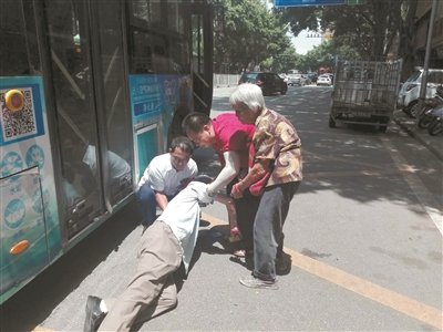 當(dāng)天上午11時(shí)50分,廣州增城102路公交司機(jī)沈觀照駕駛公交車??吭龀菂^(qū)華峰社區(qū)公交站時(shí),車廂中突然有乘客大喊:“快幫幫忙,有個(gè)阿伯摔倒了!” 沈師傅聽到喊聲馬上靠邊停車,只見一名約80歲阿伯摔倒在公交站站臺(tái)上,一名年紀(jì)相仿的阿婆是他的老伴,正試圖扶起他,但有些力不從心。沈師傅馬上和另外一名在場的司機(jī)一同扶起摔倒阿伯,“阿伯意識(shí)是清晰的,但損傷還是比較嚴(yán)重,臉皮破皮流血?!鄙驇煾嫡f,看阿伯的表情很痛苦,隨即一邊致電120尋求幫助,一邊細(xì)心攙扶著阿伯到旁邊的公交站凳休息。據(jù)悉,暈倒的阿伯和老伴準(zhǔn)備乘車去石灘鎮(zhèn)找女兒,準(zhǔn)備上公交車時(shí)不小心摔倒了。(全媒體記者林亦旻 通訊員姚飛燕攝影報(bào)道)