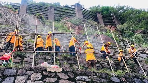他們頂風(fēng)冒雨巡查線路