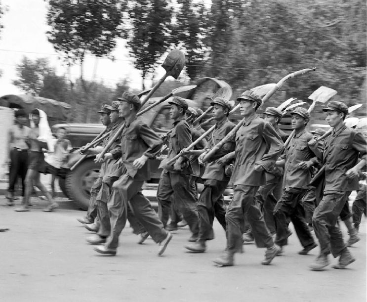 震后,大批人民解放軍日夜兼程奔赴災區(qū),搶救人民生命財產(chǎn)。(1976年8月1日發(fā))新華社記者 武清月 攝