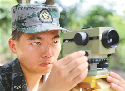 圖為何靜昆在訓(xùn)練使用測繪儀器。 高 攀攝