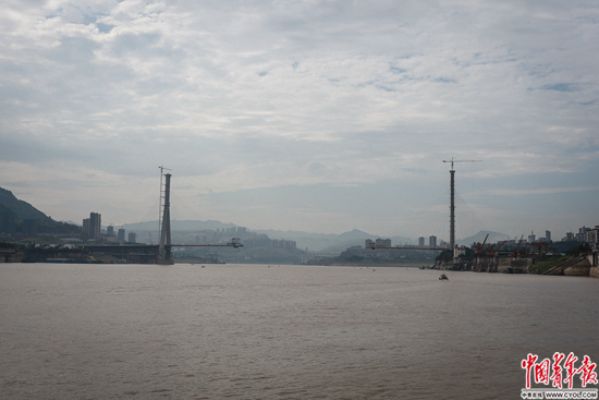重慶市萬(wàn)州區(qū),正在建設(shè)的跨江大橋。