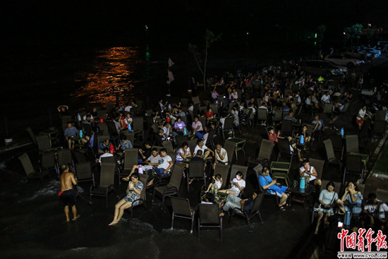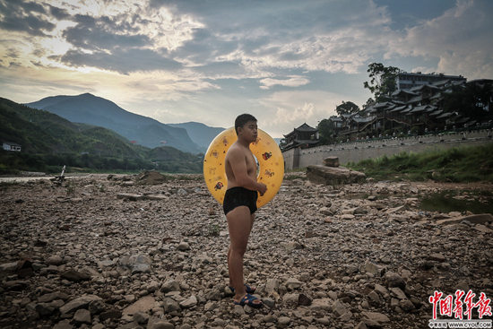云南省昭通市水富縣,長(zhǎng)江上游金沙江畔,市民在水中納涼。金沙江、橫江、長(zhǎng)江三江在水富交匯。