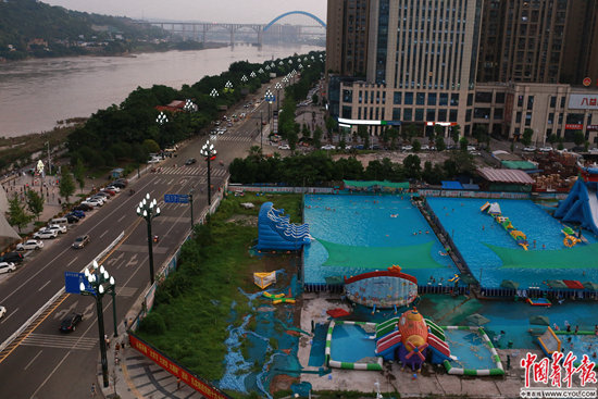 四川省宜賓市,長(zhǎng)江邊的游泳池。