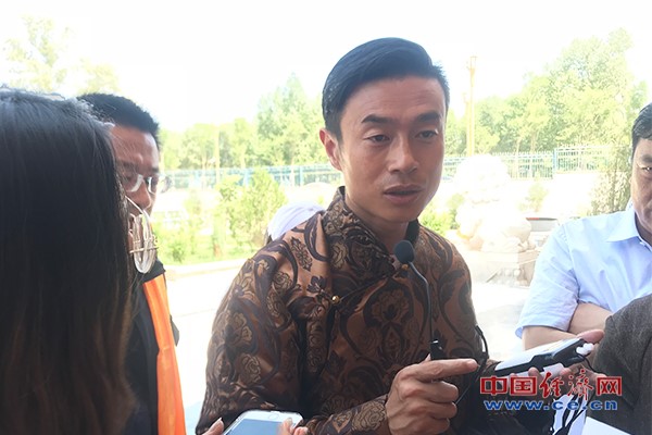 圖為熱貢龍樹畫院總經(jīng)理完德介紹畫院情況 經(jīng)濟日報-中國經(jīng)濟網(wǎng)記者 秦爽/攝