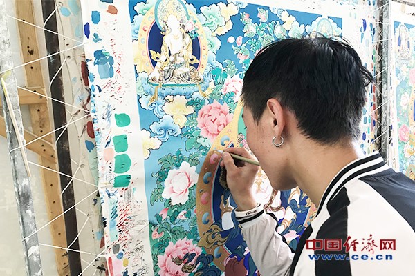 圖為正在畫院進行唐卡創(chuàng)作的學(xué)徒 經(jīng)濟日報-中國經(jīng)濟網(wǎng)記者 秦爽/攝