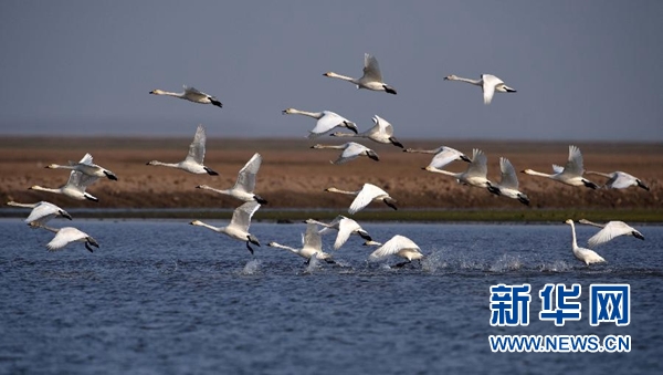 這是在東洞庭湖國家級自然保護(hù)區(qū)內(nèi)拍攝到的小天鵝(2017年3月1日攝)。新華社記者 李尕 攝