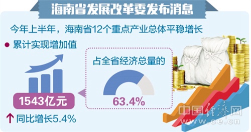 海南:上半年12個重點產(chǎn)業(yè)同比增長5.4%