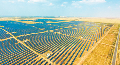 庫(kù)布其沙漠生態(tài)太陽(yáng)能發(fā)電綜合示范地。虞東升攝(新華社發(fā))