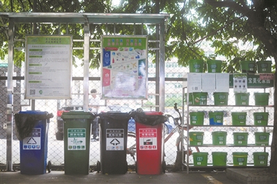 目前深圳已實(shí)施了小區(qū)垃圾分類(lèi)1.0版和2.0版。深圳市城管局副巡視員楊雷介紹,1.0版是指分類(lèi)設(shè)施已進(jìn)入小區(qū),同時(shí)在小區(qū)定期開(kāi)展資源回收日等活動(dòng)。2.0版也就是“僑香村模式”,即是分類(lèi)投放點(diǎn)在樓下集中設(shè)置,除此之外再無(wú)垃圾桶;每天垃圾投放的高峰時(shí)段,有志愿者在現(xiàn)場(chǎng)督導(dǎo)。