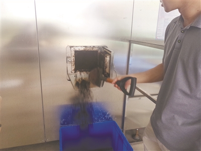 記者跟隨垃圾回收工作人員來(lái)到同樣位于社區(qū)的餐廚垃圾就地資源化處理中心,東莞市通日環(huán)??萍加邢薰靖笨偨?jīng)理陳承剛向記者介紹了垃圾變廢為寶的流程,回收人員將垃圾運(yùn)送至處理中心,通過(guò)自動(dòng)上料——人工二次分揀——垃圾破碎——擠壓脫水——油水分離——渣料微生物降解等流程,12到24小時(shí)垃圾就能變廢為寶了?!拔覀冞@套技術(shù)主要依靠的是微生物發(fā)酵降解,日處理量5噸,轉(zhuǎn)化率為15%?!?/p>