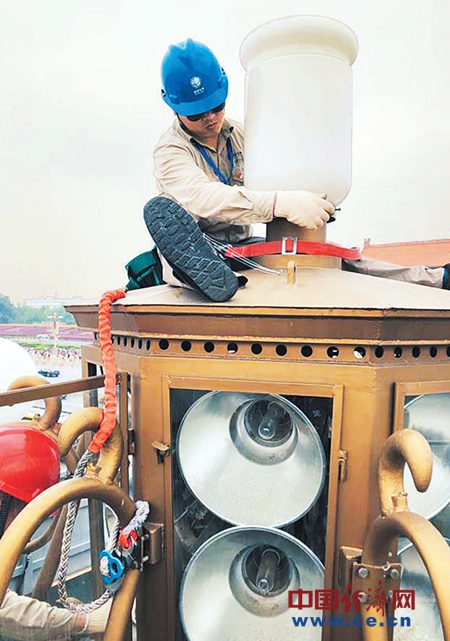 隸屬北京市城市照明管理中心的華燈班,自1959年成立以來,59年如一日,對天安門廣場以及長安街上253基華燈清掃、檢修和運(yùn)維,確保了華燈的安全穩(wěn)定運(yùn)行。
