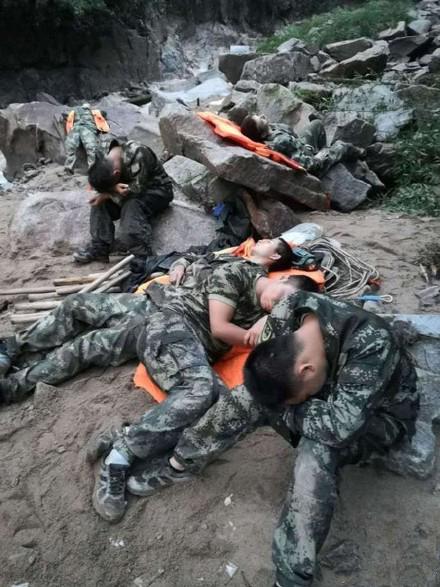 2018年6月8日凌晨3時(shí)10分起,萬(wàn)安縣消防大隊(duì)官兵連續(xù)3天奮戰(zhàn)在抗洪救災(zāi)一線,因?yàn)椴婚g斷往返轉(zhuǎn)移營(yíng)救被困群眾,極度疲勞的他們席地而睡,留下“最美睡姿”。