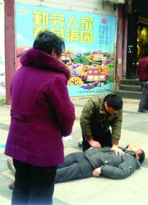 南昌大學(xué)第四附屬醫(yī)院董財(cái)榮醫(yī)生跪地為一位突發(fā)癲癇的六旬老人進(jìn)行心肺復(fù)蘇緊急搶救,最終老人脫離危險(xiǎn)。
