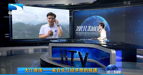 湖北廣播電視臺(tái)記者向昊在做連線(xiàn)直播。