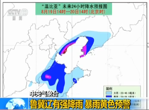 今年第18號(hào)臺(tái)風(fēng)“溫比亞”已于昨天(18日)下午減弱為熱帶低壓,中央氣象臺(tái)解除臺(tái)風(fēng)藍(lán)色預(yù)警。但它減弱后的低壓還將繼續(xù)北上,受其影響,仍會(huì)給山東、河北、遼寧等地部分地區(qū)帶來強(qiáng)降雨,中央氣象臺(tái)上午10點(diǎn)發(fā)布暴雨黃色預(yù)警。