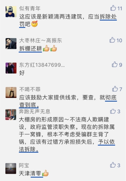對(duì)于違法大棚房,網(wǎng)友們紛紛表示心痛和憤怒: