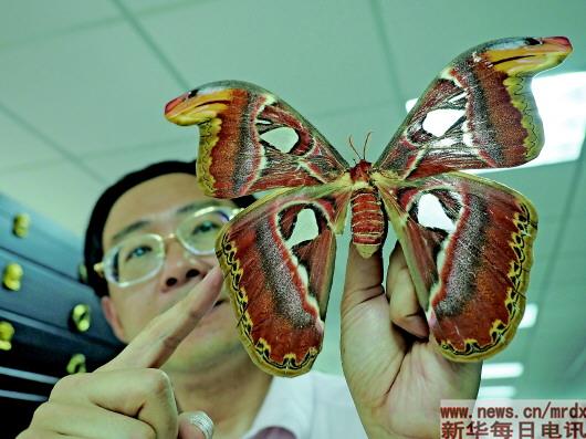 有人害怕蝴蝶和蛾子,以為它們翅膀表面的鱗片有毒。趙力解釋說(shuō),其實(shí)那些鱗片和頭發(fā)的成分一樣,人接觸了以后并不會(huì)有不良反應(yīng)。