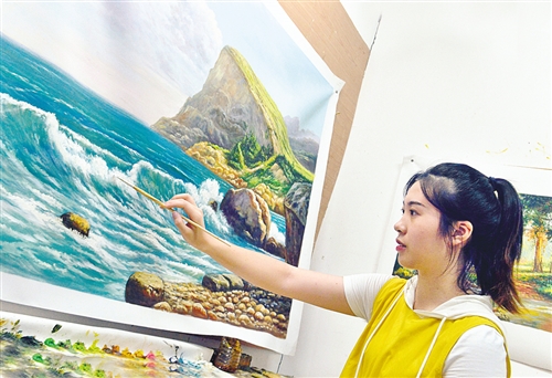 江西省黎川縣油畫創(chuàng)意產(chǎn)業(yè)園,畫師在繪制長江油畫。近年來,該縣大力發(fā)展以油畫為主的文化產(chǎn)業(yè),油畫創(chuàng)意產(chǎn)業(yè)園年創(chuàng)產(chǎn)值1.2億元。 王武輝攝