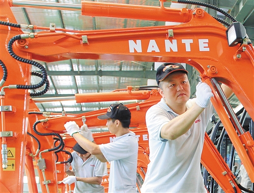 江西省高安高新技術(shù)產(chǎn)業(yè)園南特機械有限公司的“扶貧車間”里,員工在安裝設(shè)備。該市引導(dǎo)企業(yè)通過“企業(yè)+扶貧車間+貧困戶”的形式,帶動有勞動能力的貧困群眾脫貧致富。 彭松林 攝