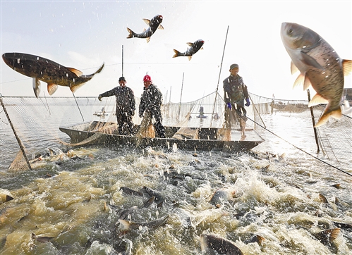 江蘇省盱眙縣河橋鎮(zhèn)漁民在捕魚。盱眙縣不斷探尋水產(chǎn)養(yǎng)殖業(yè)高質(zhì)量發(fā)展之路,不斷提升當(dāng)?shù)厝罕娚钏健?周海軍 攝