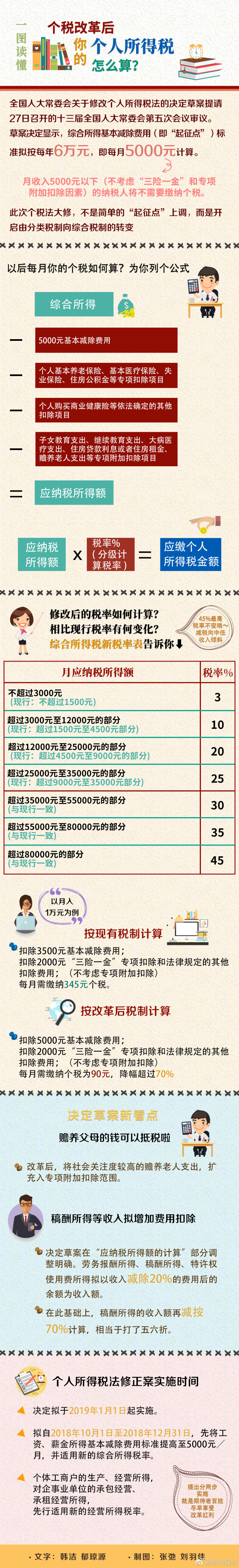 改革后,基本減除費用標準提至每月5000元,“三險一金”專項扣除繼續(xù)保留的同時,低檔稅率級距拉大,納稅人只需繳納90元,降幅超過70%。如果加上增加的專項附加扣除項目,扣除額實際高于每月5000元,減負力度會更大。